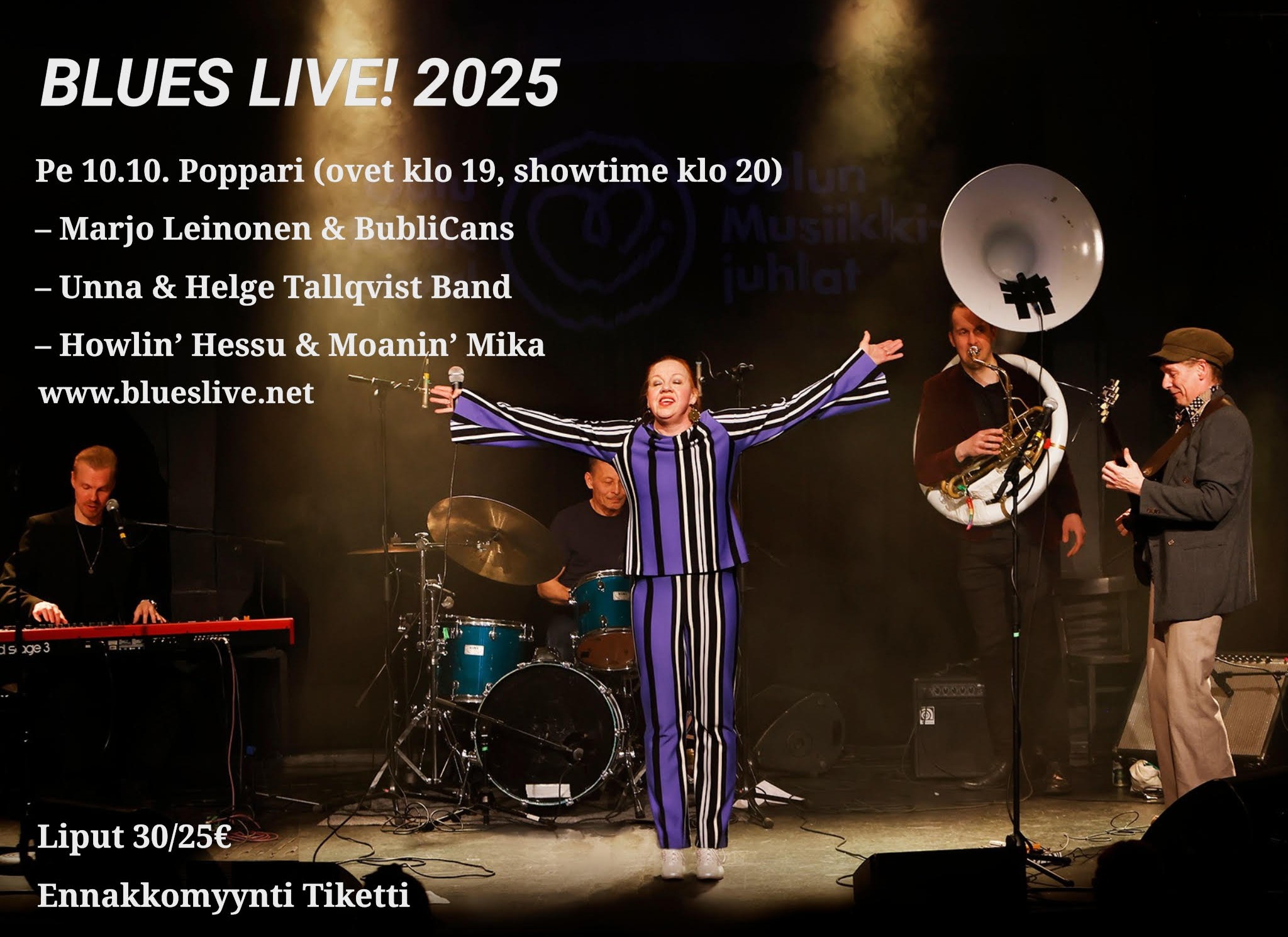 Ennakkomyynti Tiketti: https://www.tiketti.fi/blues-live-2025-poppari-jyvaskyla-lippuja/112177